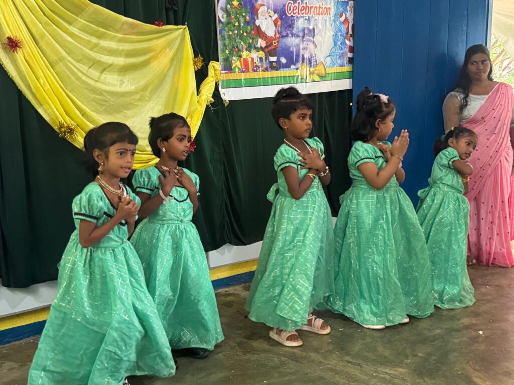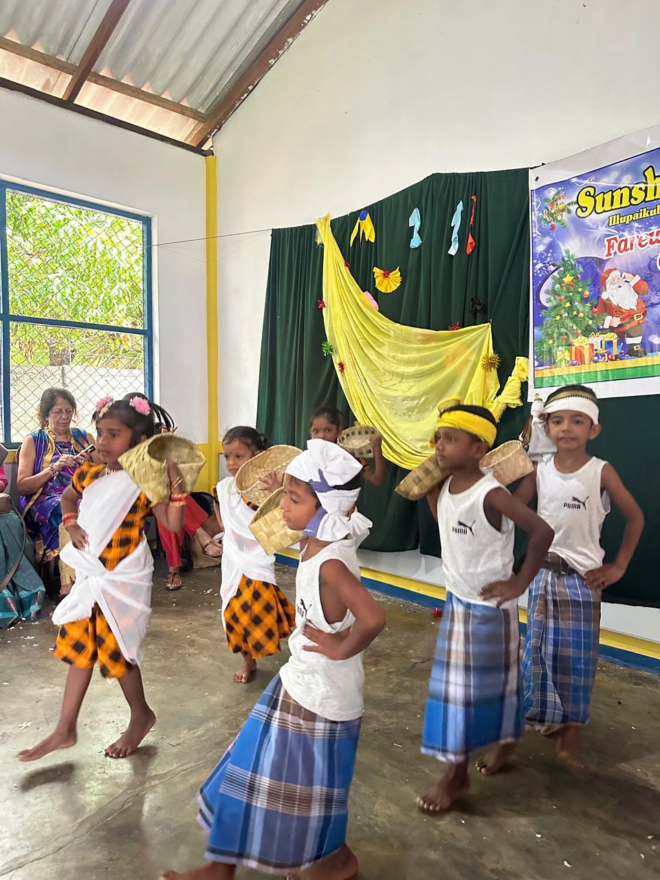 By the end of a school year, the staff and students alike are usually ready to say goodbye to another great year. So, it was at the Sunshine Preschool for the children leaving and children staying-on when they celebrated the end of another year, coming together to meet and greet, to show-case and honor their dancing talents, to enjoy plenty of ice-cream and cake and to receive their End of Year gifts. Celebrating with the children were parents, staff, friends, visitors from the community and guest of honour – former District Secretary & Government Agent Mrs. J. J. Muraleetharan.